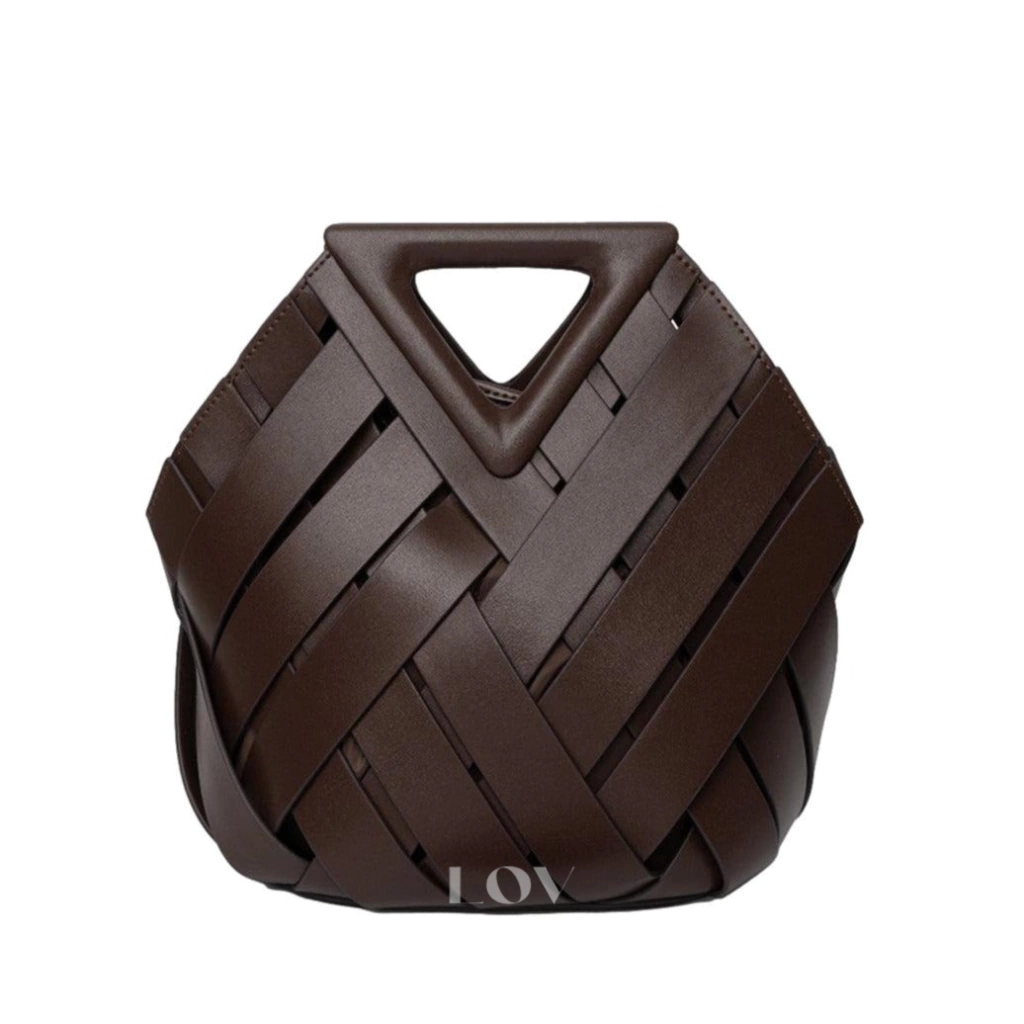 ▪️ Confeccionada artesanalmente em couro legítimo, apresenta um design arquitetônico único, que mistura formas geométricas e textura lisa impecável.